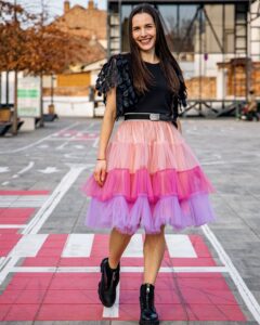 Câteva zile mai târziu, am primit coletul. Ambalajul era impecabil, atent pregătit, dar nimic – absolut nimic – nu m-a impresionat mai tare decât calitatea hainelor din interior. Cele două piese pe care le port mai jos… mi-au tăiat respirația. Le-am atins, iar materialul lor mi-a amintit de vechile ateliere de modă ale copilăriei, de stofele grele, elegante, de mătasea care curge ca o apă, de taftaua care are propria ei prestanță. Erau haine adevărate, nu simple obiecte de îmbrăcăminte.
