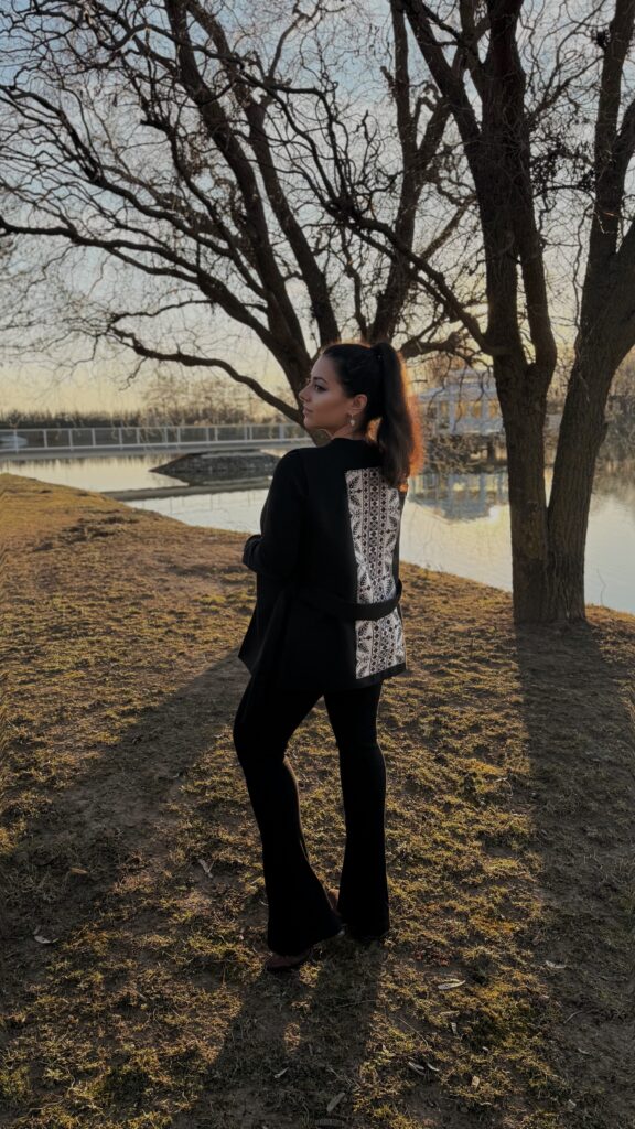M-au înmărmurit. Da, acesta e cuvântul. O rochie și o bluză care nu doar se așază bine pe corp, ci îl onorează. Îl pun în valoare. Și mi-am spus: „Aceasta nu este o colaborare. Este o întâlnire”. O întâlnire între două feluri de a vedea lumea – unul ancorat în rigoare, în detaliu și responsabilitate, și celălalt în culoare, inspirație și libertate.